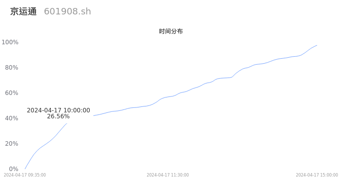 根据成交分布分析,该股票当天缩量成交,成交清淡。时间上看,早盘前半小时成交量占据当天总成交量的26.56%;价格上看,成交呈现中间峰。成交分布分析主要研究股票成交的分布特性,不具有预测功能,请知悉。