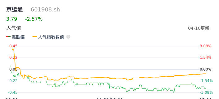 04月10日,京运通收报3.79,股价涨幅-2.57%,成交金额7234.12万元,换手率0.79%。