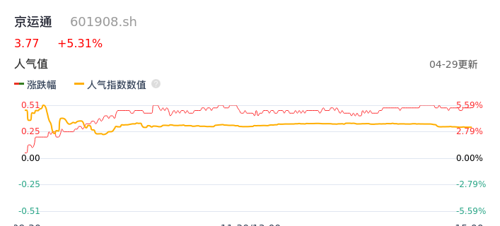 04月29日,京运通收报3.77,股价涨幅5.31%,成交金额1.03亿元,换手率1.14%。