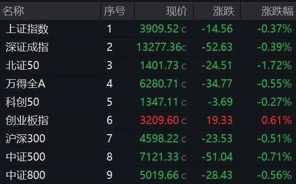 12月9日,A股小幅震荡整固,创业板指表现略强,微幅上扬收复3200点,上证指数下试3900点支撑,上证50则跌破3000点大关。超4100只个股下跌,成交1.92万亿元。