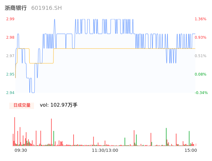 04月15日,浙商银行收报2.98,股价涨幅1.02%,成交金额3.06亿元,换手率0.48%。