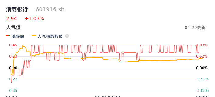 04月29日,浙商银行收报2.94,股价涨幅1.03%,成交金额3.09亿元,换手率0.49%。