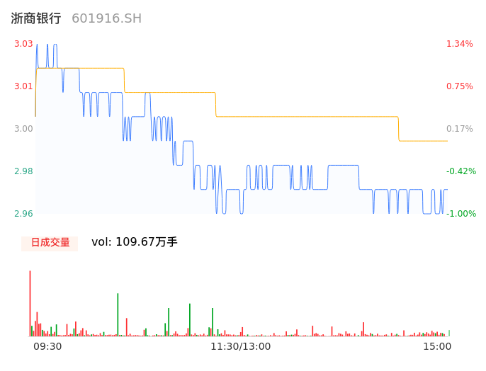 04月22日,浙商银行收报2.96,股价涨幅-1.00%,成交金额3.28亿元,换手率0.51%。
