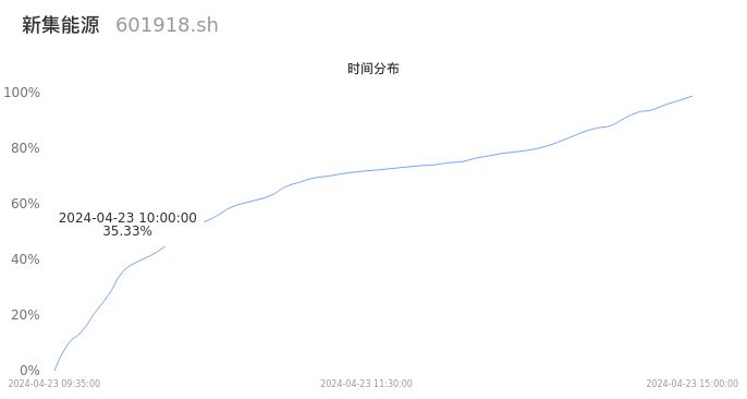 601918新集能源2024年04月23日成交39.56万手,成交金额3.43亿元,相较昨日放量6.91万手,换手率1.53%,成交清淡。