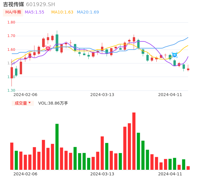 04月11日,吉视传媒收报1.46,股价涨幅0.00%,成交金额5712.63万元,换手率1.11%。