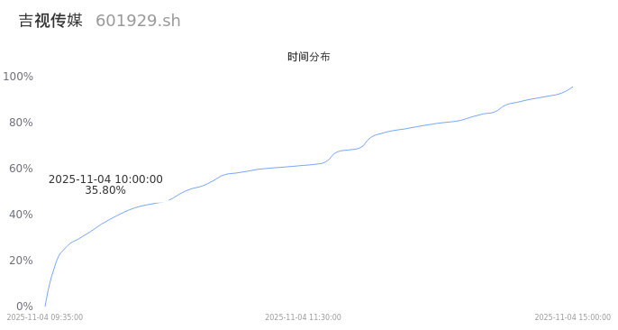 601929吉视传媒2025年11月04日成交1063.27万手,成交金额44.82亿,相较昨日放量716.28万手,换手率30.47%,成交活跃。