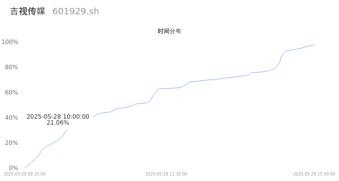 601929吉视传媒2025年05月28日成交57.11万手,成交金额1.03亿,相较昨日缩量12.12万手,换手率1.64%,成交清淡。