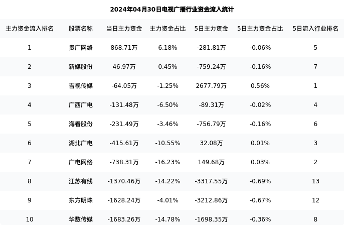 从主力资金流向来看,电视广播行业今日主力资金流入3.51亿元,在所有申万二级行业中排名:43/131。
