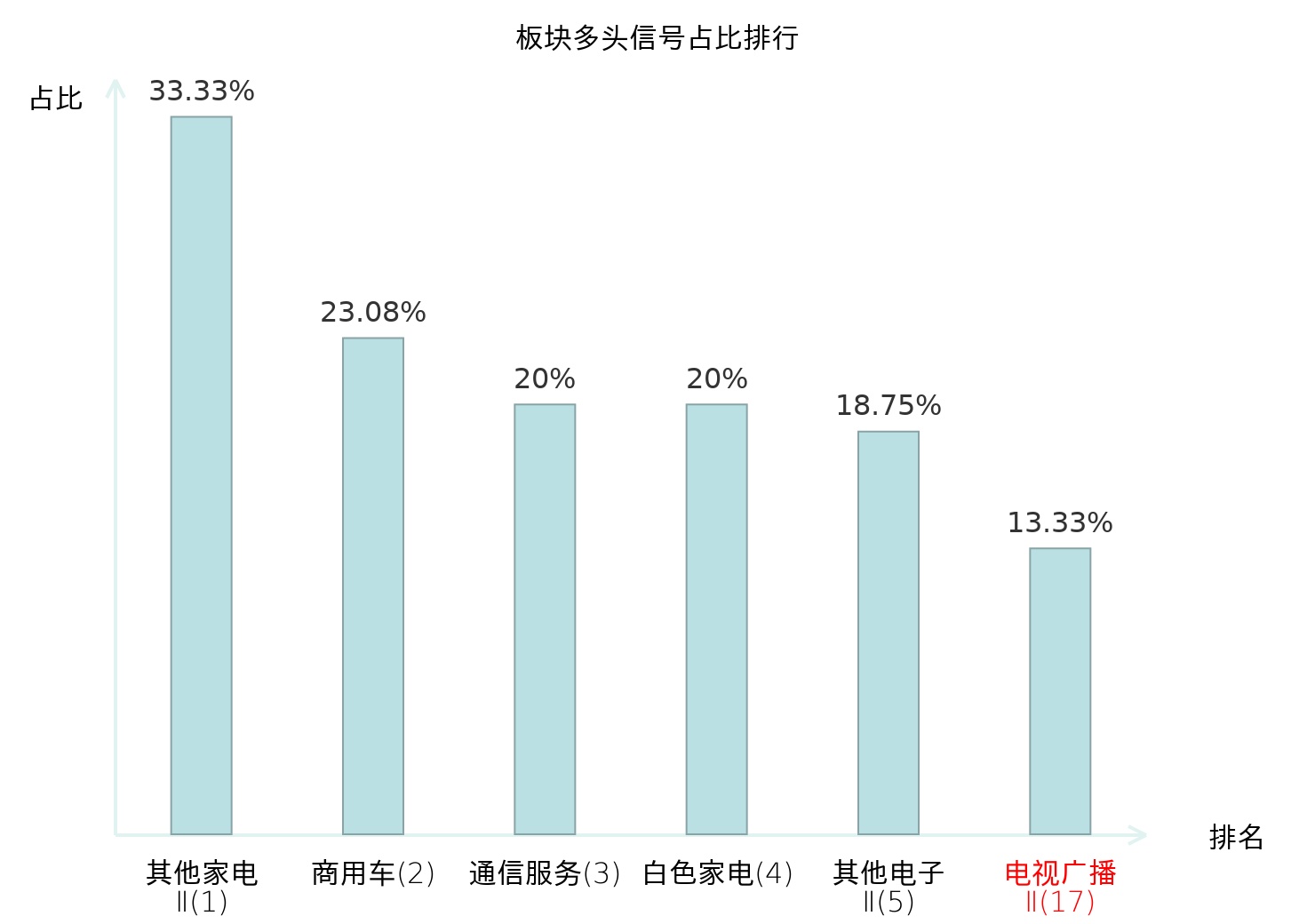 从主力宝信号数据分析,吉视传媒所属的电视广播Ⅱ板块中共有2只股票发出主力多头信号,主力多头信号占比在全行业中排名第17位,较昨日上升90位。较高的排名表明主力对电视广播Ⅱ板块的买入意愿较强,此次排名的显著上升可能反映了主力对板块态度的正面调整,为投资者提供了市场情绪和潜在投资机会的参考。全市场所有行业板块中,其他家电Ⅱ板块的主力多头信号占比最高,位居第一;其他家电Ⅱ板块名次提升最快,较昨日上升129位。这些变动揭示了不同行业间主力资金动向的变化,有助于投资者更好地理解市场动态和趋势。