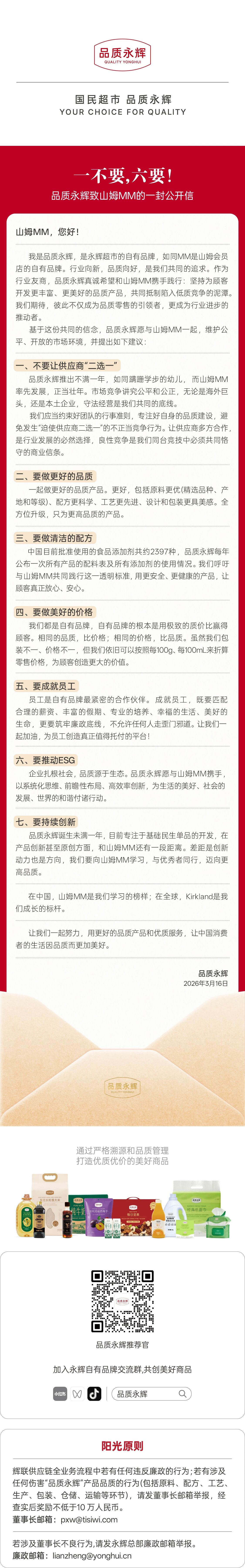 品质永辉发布公开信 呼吁山姆MM不要让供应商“二选一”
