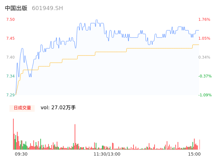 04月29日,中国出版收报7.47,股价涨幅1.36%,成交金额2.01亿元,换手率1.48%。