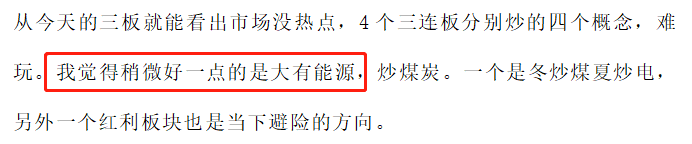 昨天预测大有能源能够晋级,今天果然不负众望,加速晋级4连板。我今天回复小纸条的时候有人问我,煤炭蓝筹股能买么?我想说煤炭每年都有妖股,他们没有啥炒作逻辑,就是被资金硬生生买上去的。不要研究什么分红、盈利等等数据,就研究盘口就行了。