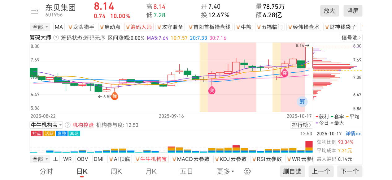 2)20251014-东贝集团-【筹码大师】和【牛牛机构宝】-近期出现弹信号且底部量柱由绿转红