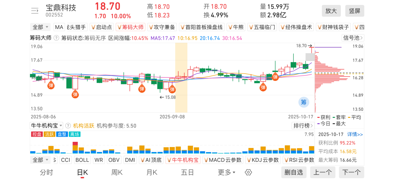 1)20251009-宝鼎科技-【筹码大师】和【牛牛机构宝】-近期出现弹信号且底部量柱由绿转红