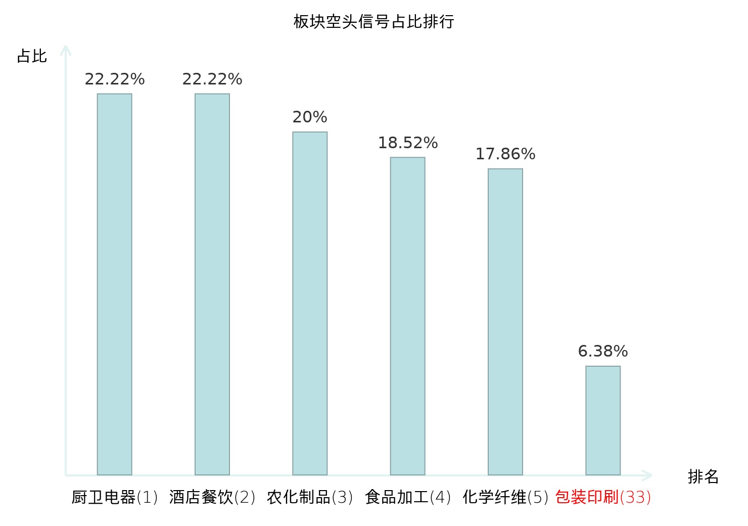 全市场所有行业板块中主力空头信号占比排名中,厨卫电器板块位居第一。化学纤维板块名次提升最快,较昨日上升119位。
