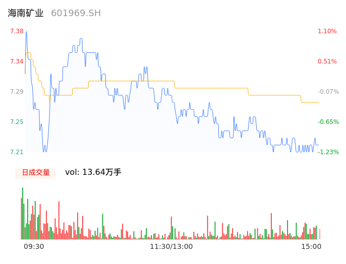 04月30日,海南矿业收报7.22,股价涨幅-1.10%,成交金额9927.62万元,换手率0.67%。