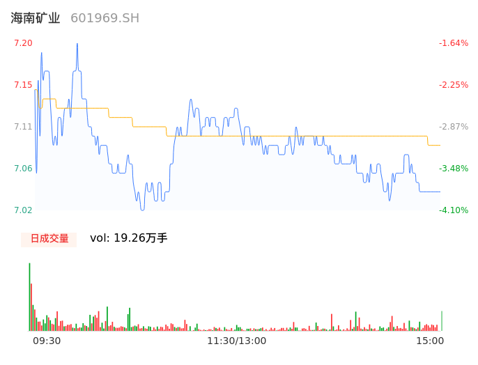 04月23日,海南矿业收报7.03,股价涨幅-3.96%,成交金额1.37亿元,换手率0.95%。