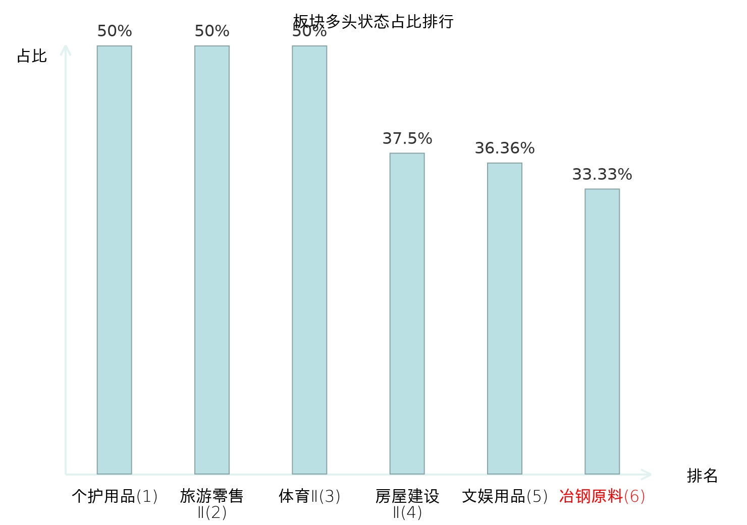 全市场所有行业板块中主力多头状态占比排名中,个护用品板块位居第一。焦炭Ⅱ板块名次提升最快,较昨日上升68位。