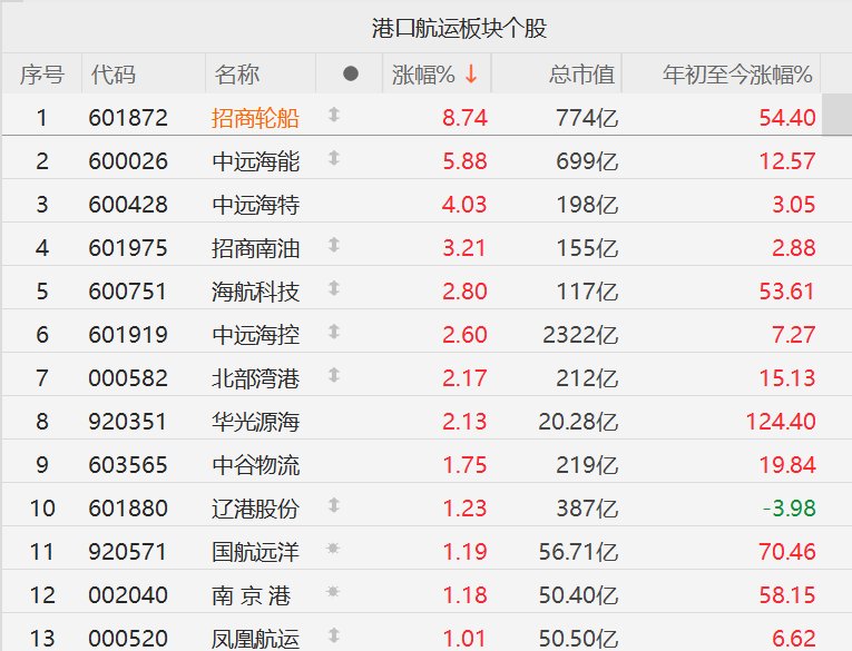 A股异动丨BDI指数12连升,港口航运股走强,招商轮船一度触及涨停创历史新高