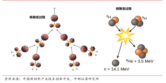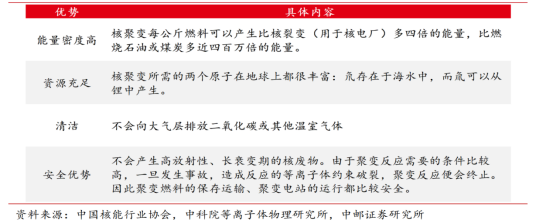 2)能量大且可持续:核聚变是通过轻原子核在高温高压条件下结合成重原子核并释放能量的过程。根据爱因斯坦的质能方程,这一过程中损失的质量会转化为能量释放出来。核聚变反应的能量密度极高,能够提供稳定、可持续的能源供应。