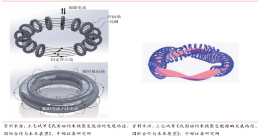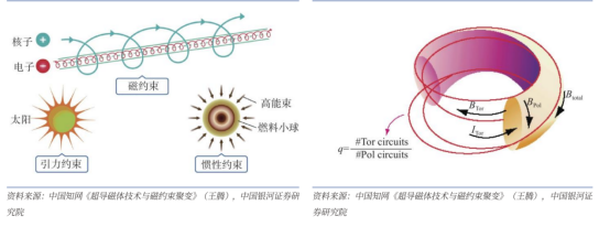 图表4:核聚变三种发展路线(左)托卡马克磁约束示意图(右)