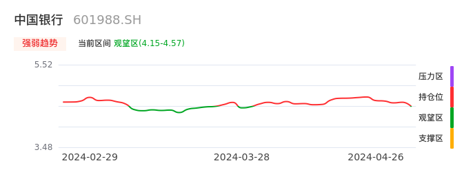 04月26日,中国银行收报4.56,股价涨幅-1.94%,成交金额11.82亿元,换手率0.12%。