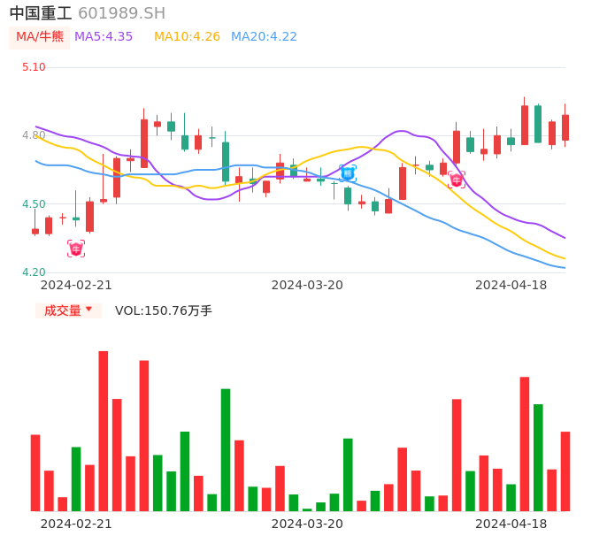 中国重工牛熊点指标分析报告-20240418