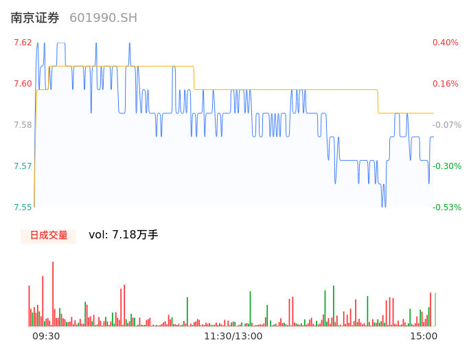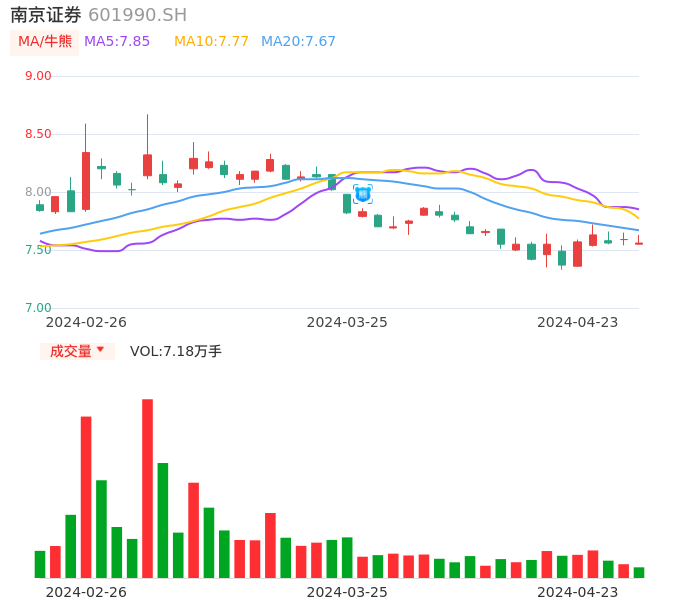 04月23日,南京证券收报7.56,股价涨幅-0.40%,成交金额5450.75万元,换手率0.20%。