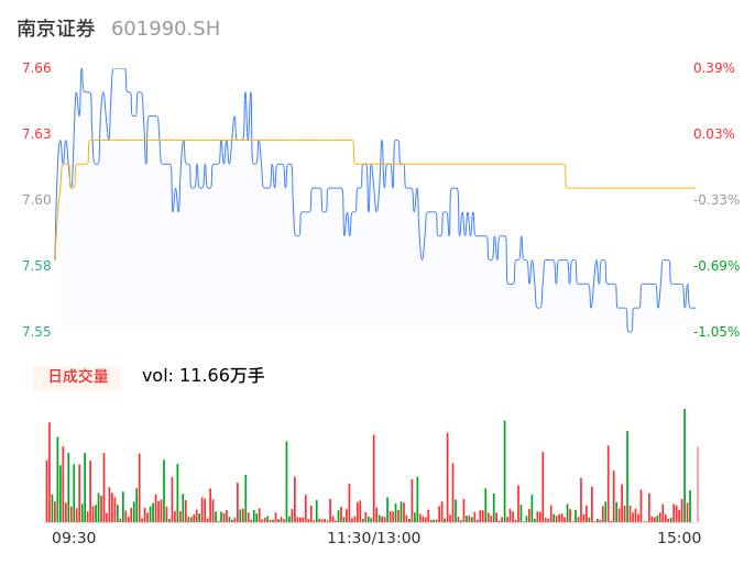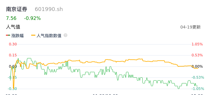 04月19日,南京证券收报7.56,股价涨幅-0.92%,成交金额8867.18万元,换手率0.32%。