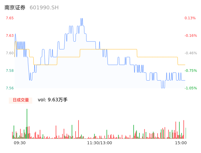 04月25日,南京证券收报7.56,股价涨幅-1.05%,成交金额7310.74万元,换手率0.26%。