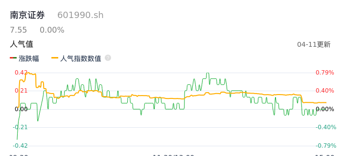 04月11日,南京证券收报7.55,股价涨幅0.00%,成交金额8034.65万元,换手率0.29%。