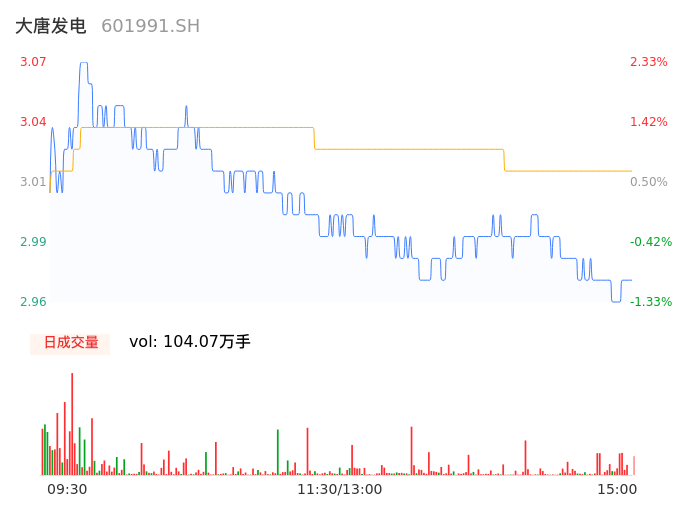 04月22日,大唐发电收报2.97,股价涨幅-1.00%,成交金额3.14亿元,换手率0.84%。