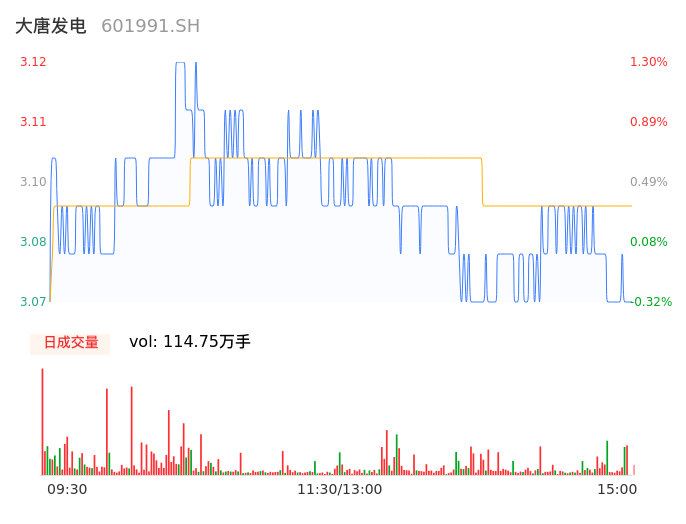04月10日,大唐发电收报3.08,股价涨幅0.00%,成交金额3.55亿元,换手率0.93%。