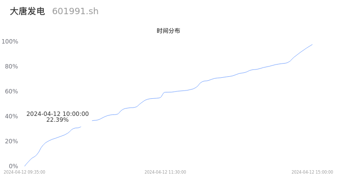 601991大唐发电2024年04月12日成交124.33万手,成交金额3.90亿元,相较昨日缩量37.50万手,换手率1.00%,成交清淡。