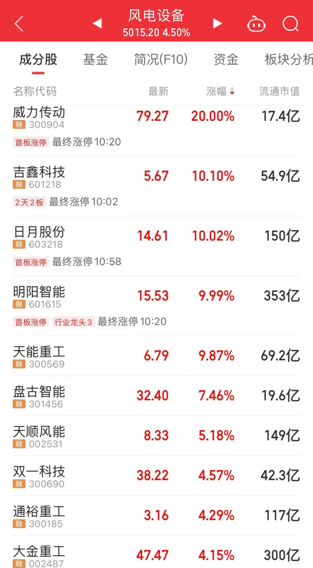 风电设备板块大涨