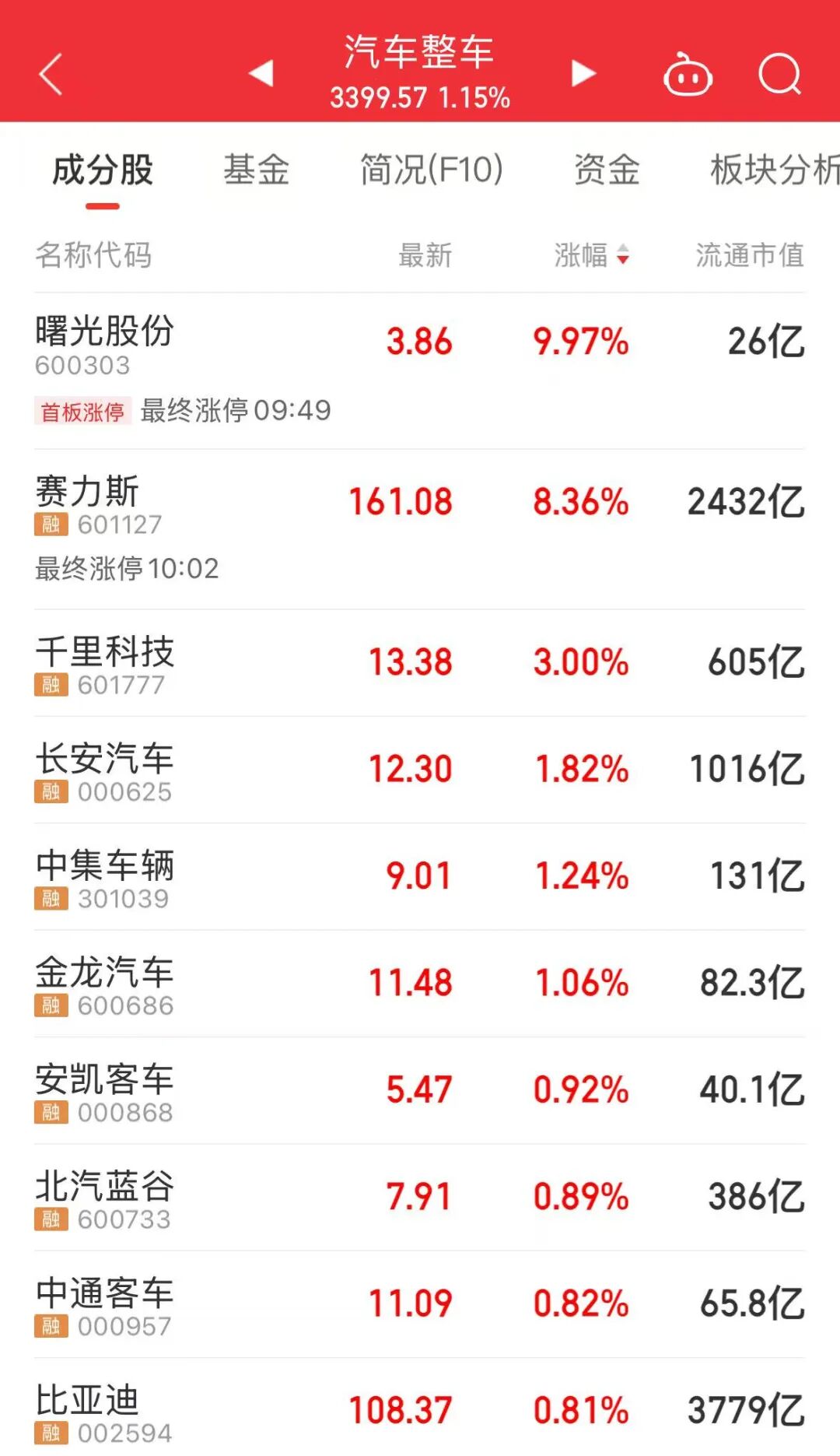 汽车整车板块上涨