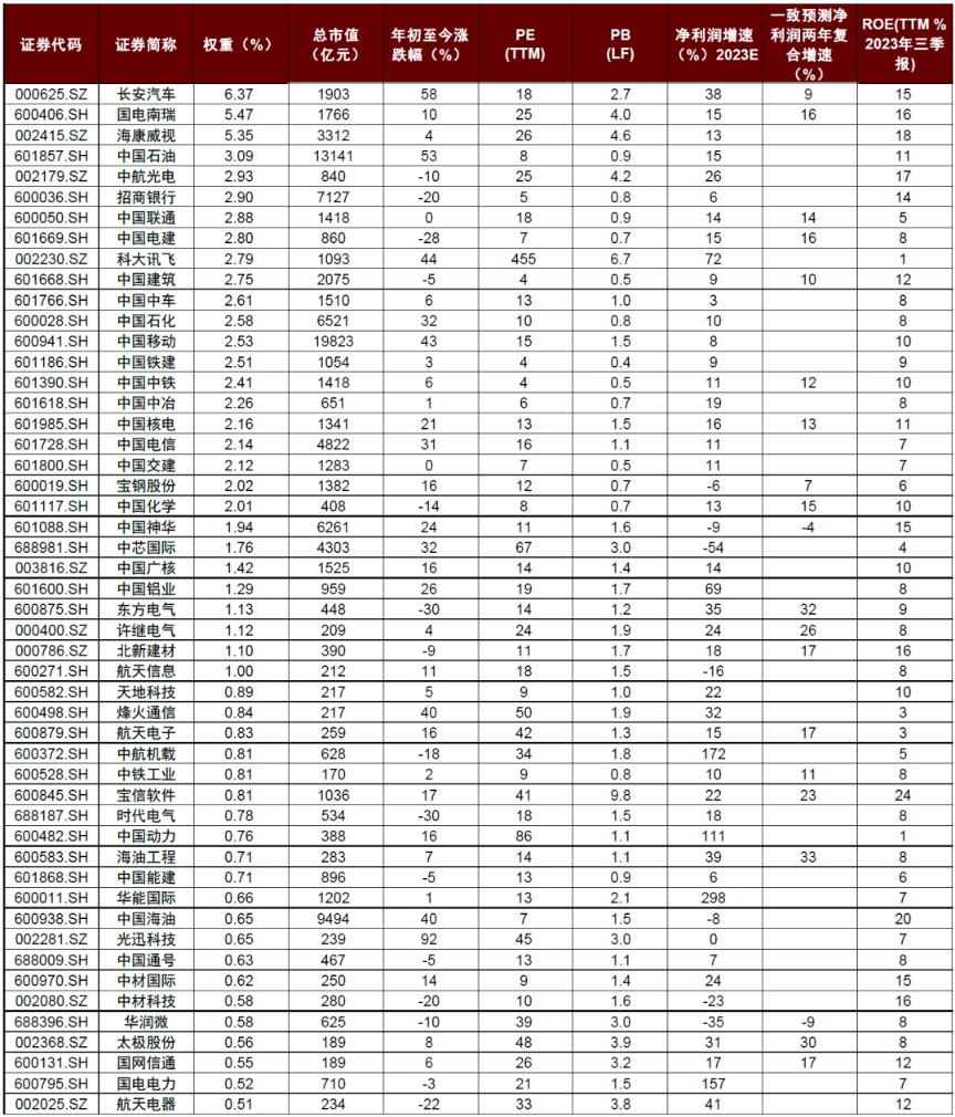 图表2:中证央企创新驱动指数成分股权重TOP50