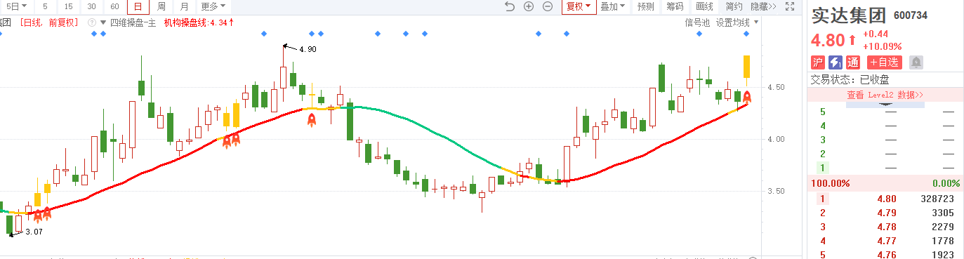 1)实达集团-四维操盘-近期出现火箭信号且底部量柱由绿转红