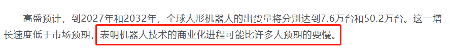 高盛认为机器人商业化进程要远低于大家的预期,也就是说现在机器人炒作太疯狂了,接下来的调整幅度要很深。