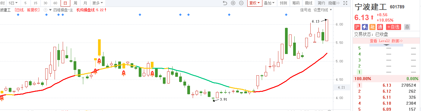 2)宁波建工-四维操盘-近期出现火箭信号且底部量柱由绿转红
