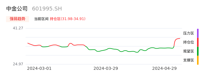 我们来看一下该股的九方特色指标强弱趋势的情况:中金公司近日从观望区上穿到持仓区。股价短期站稳多头区域,上升动能仍较为充足,可积极关注。后续重点关注上方压力位:34.91元是否能突破上攻。