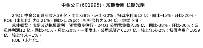 值得注意的是:2024年04月招商证券的郑积沙/张晓彤分析师,首次发布关于中金公司的研究报告,标题为:中金公司(601995):短期受困 长期光明。