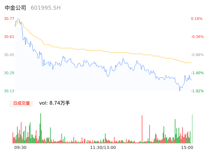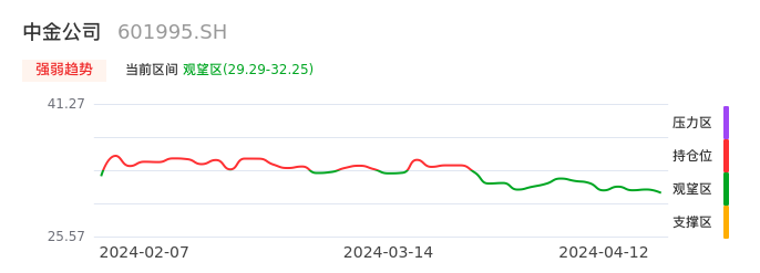 04月12日,中金公司收报30.22,股价涨幅-1.63%,成交金额2.66亿元,换手率0.30%。