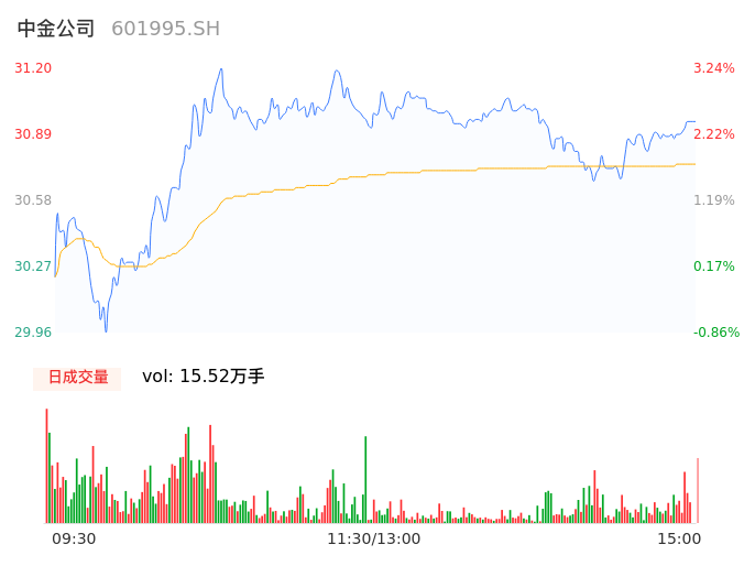 04月15日,中金公司收报30.97,股价涨幅2.48%,成交金额4.77亿元,换手率0.53%。