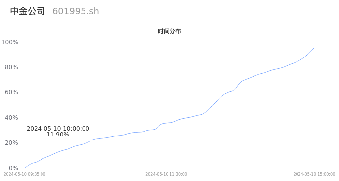 601995中金公司2024年05月10日成交23.59万手,成交金额8.01亿元,相较昨日放量9.32万手,换手率0.81%,成交清淡。