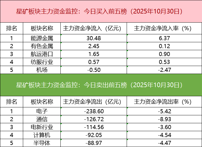 从主力板块资金监控数据来看,能源金属板块主力资金净流入居首。