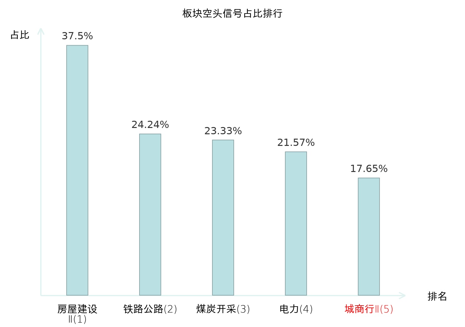 全市场所有行业板块中主力空头信号占比排名中,房屋建设Ⅱ板块位居第一。煤炭开采板块名次提升最快,较昨日上升117位。