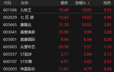 上证报中国证券网讯 11月12日早盘,服装板块震荡拉升,截至10时43分,九牧王、七匹狼、康隆达、真爱美家涨停,奥康国际等跟涨。