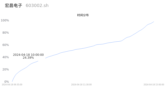 根据成交分布分析,该股票当天放量成交,成交清淡。时间上看,早盘前半小时成交量占据当天总成交量的24.39%;价格上看,成交呈现中间峰。成交分布分析主要研究股票成交的分布特性,不具有预测功能,请知悉。