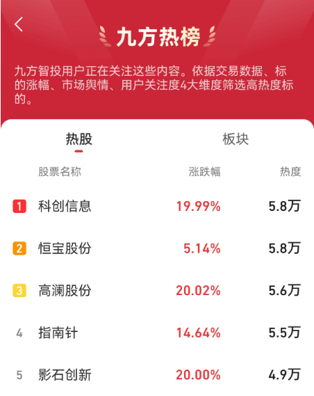 九方智投:科创信息、恒宝股份、高澜股份、指南针、影石创新